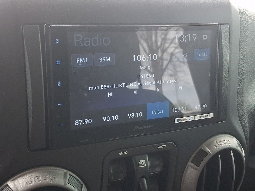 Bluetooth® technology is built into the Jeep Wrangler, keeping your hands on the steering wheel and your focus on the road. This mid-size suv has a clean CARFAX vehicle history report. This model has satellite radio capabilities. This Jeep Wrangler has a V6, 3.6L high output engine. When you encounter slick or muddy roads, you can engage the four wheel drive on the Jeep Wrangler and drive with confidence. Maintaining a stable interior temperature in this unit is easy with the climate control system. It features elegant lines colored with a long lasting sand colored finish. Quickly unlock it with keyless entry. The Jeep Wrangler has an automatic transmission. The Jeep Wrangler is equipped with front side curtain airbags. The fog lights cut through the weather so you can see what's ahead. Easily set your speed in this mid-size suv with a state of the art cruise control system. Increase or decrease velocity with the touch of a button.