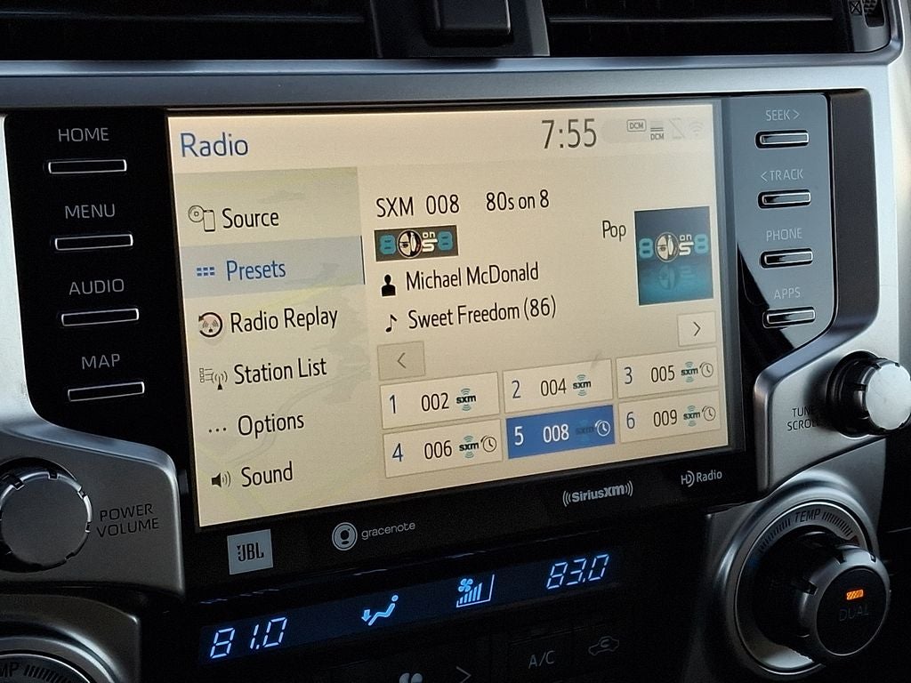 - Radio: Premium Audio w/JBL -inc: 8.0" touch-screen display, HD radio, 15 speakers including subwoofer and amplifier, Android Auto, Apple CarPlay and Amazon Alexa compatible, USB media port, 4 USB charge ports, Dynamic Navigation w/up to a 3-year trial, dynamic POI search, dynamic voice recognition, hands-free phone capability and music streaming via Bluetooth® wireless technology, SiriusXM w/3-month Platinum Plan trial, Connected Services - Safety Connect w/1-year trial, Service Connect w/10-year trial, Remote Connect w/1-year trial, Wi-Fi Connect w/up to 2 GB within 3-month trial and Destination Assist w/1-year trial, See toyota.com/audio-multimedia for details