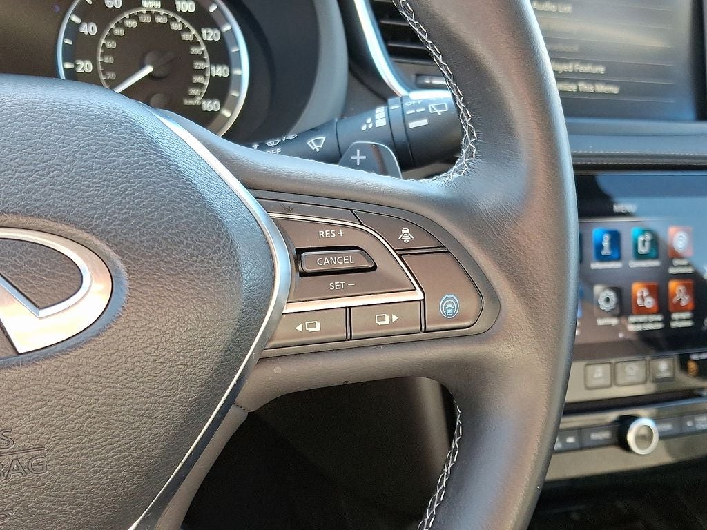 This vehicle features a hands-free Bluetooth® phone system. This unit's Forward Collision Warning feature alerts drivers to potential front-end collisions. Apple CarPlay: Seamless smartphone integration for it - stay connected and entertained on the go! The vehicle offers Automatic Climate Control for personalized comfort. This unit offers Android Auto for seamless smartphone integration. The leather seats in this 2023 INFINITI QX50 are a must for buyers looking for comfort, durability, and style. The state of the art park assist system will guide you easily into any spot. Protect this unit from unwanted accidents with a cutting edge backup camera system. Never get into a cold vehicle again with the remote start feature on the vehicle. Maintaining a stable interior temperature in the INFINITI QX50 is easy with the climate control system. Impresses the most discerning driver with the deep polished blue exterior on this unit. Enjoy the convenience of the power liftgate on this INFINITI QX50.