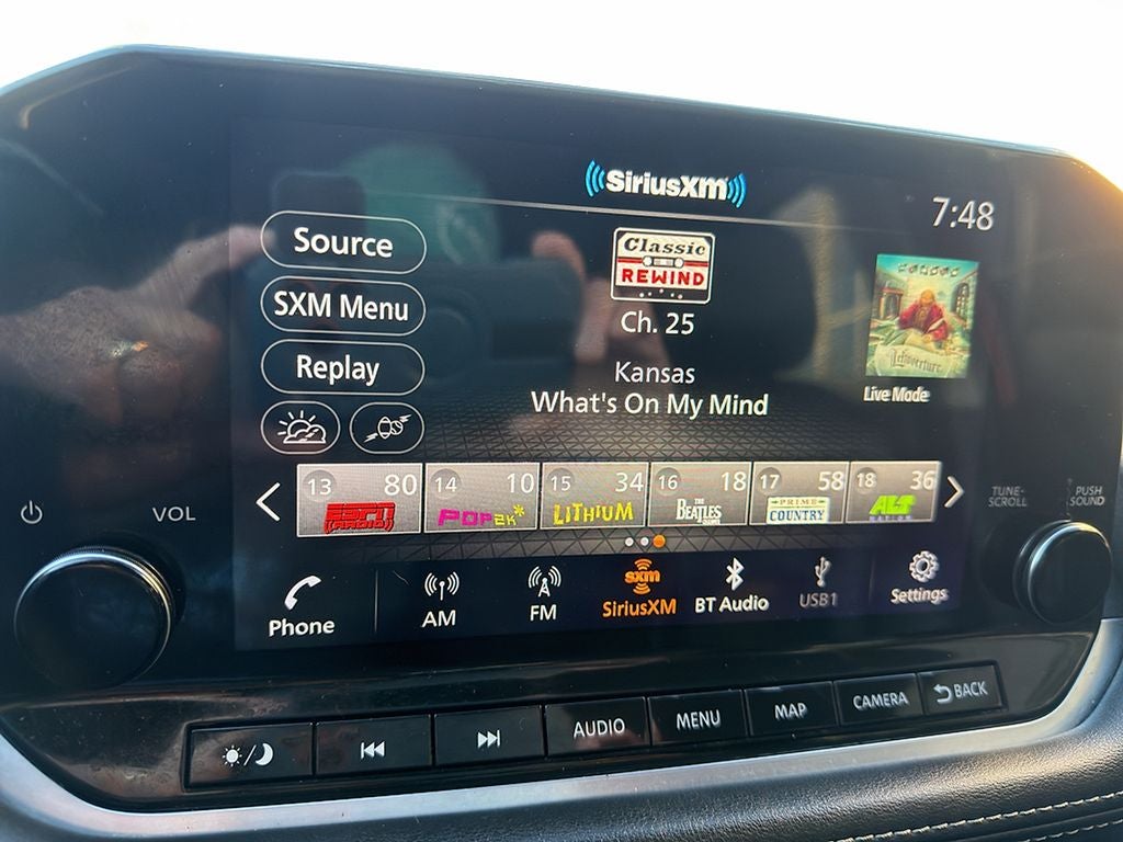 - Radio: AM/FM -inc: 6 speakers, NissanConnect featuring Apple CarPlay and Android Auto, 8" color touch screen display, Bluetooth®, WiFi hotspot and NissanConnect services powered by SiriusXM