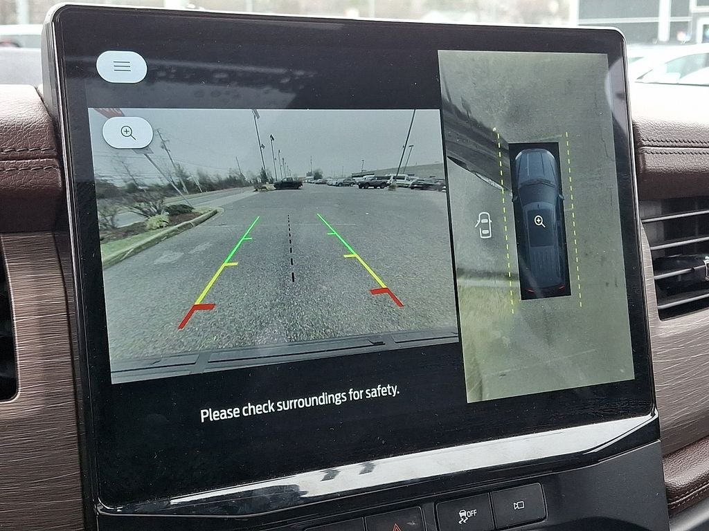 Equipment Group 302A High Package: Heated and Ventilated Leather Front Captain's Chairs; 22" 12-Spoke Polished Aluminum Wheels; 7. 450 lbs GVWR; B&O Sound System by Bang and Olufsen; Ebony Black Mesh Grille; Power-Folding Sideview Mirrors with Autofold; Magnetic-Painted Power Deployable Running Boards; 10-Speed Automatic Transmission with SelectShift; Panoramic Vista Roof; 3.5L EcoBoost V6 Engine; Heavy-Duty Independent Suspension; P285/45R22 110H AS BSW Tires; 3.31 Axle Ratio. Ford Co-Pilot360 Assist 2.0: Connected Navigation; Reverse Brake Assist; 360-Degree Camera with Split View. Panoramic Vista Roof. 2nd Row Power-Folding 40/20/40 Leather Bench Seat. Mahogany. Advanced Cargo Manager. **Equipment listed is based on original vehicle build and subject to change. Please confirm the accuracy of the included equipment by calling the dealer prior to purchase.**
